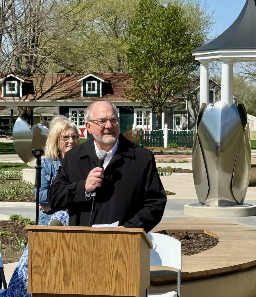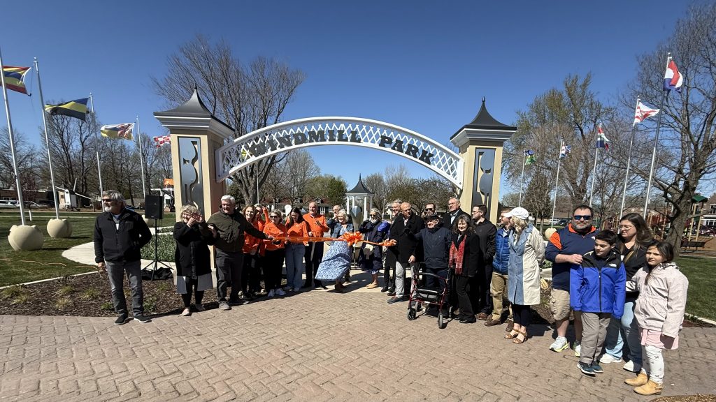 It was a windy, cold, but sunny day in Orange City, with conditions fitting for a ribbon-cutting at Windmill Park, as a large crowd gathered, including city leaders, members of the Vogel family, and community residents.