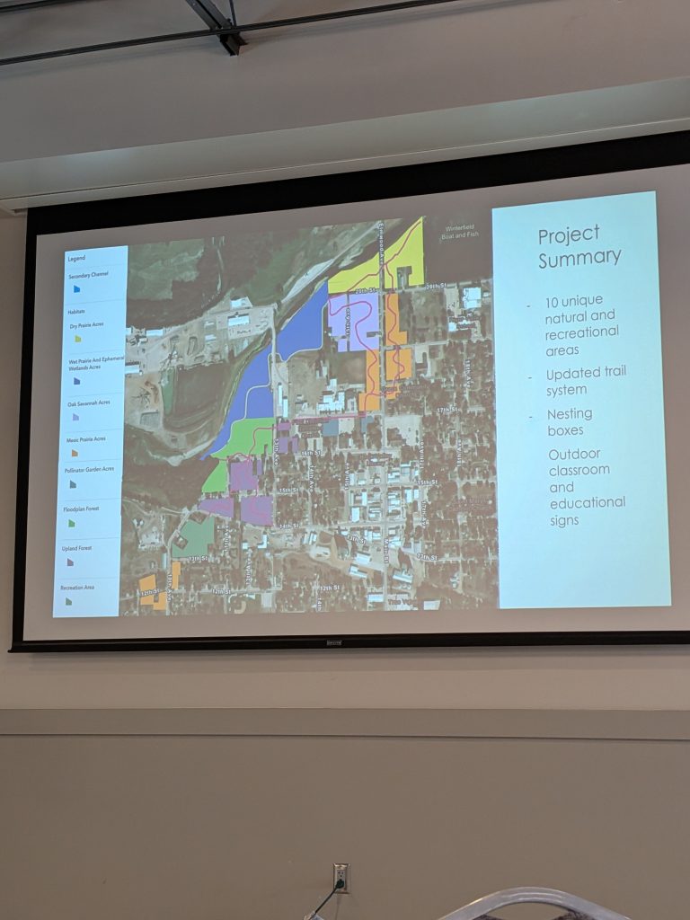 Furthermore, Dr. Rob De Haan led his Restoration Ecology and Stewardship class in designing the site. Following the presentation, students visited each table to listen to community concerns. Dr. De Haan lays out why he believes the project is vital.