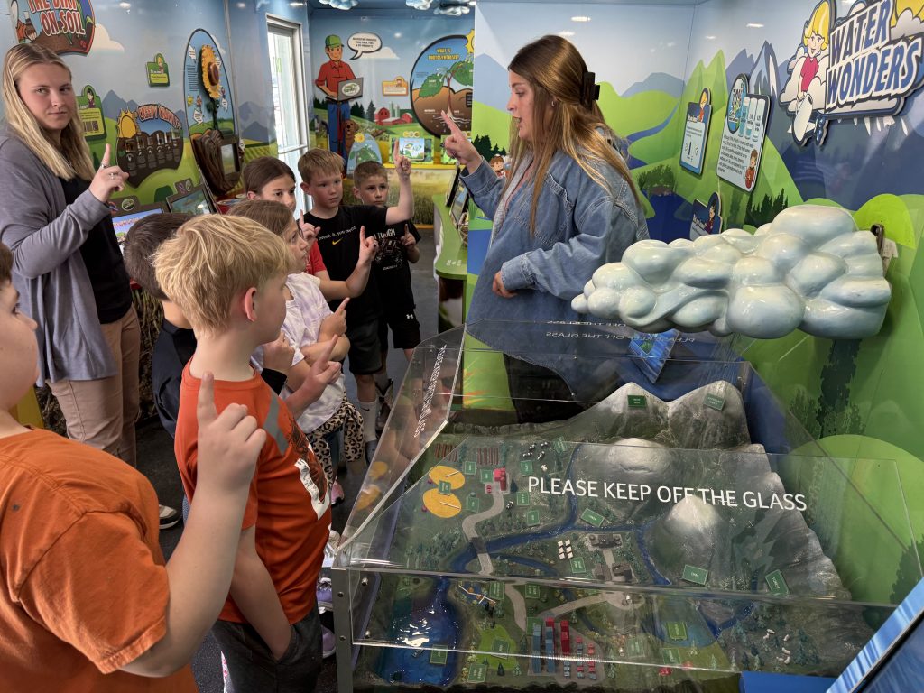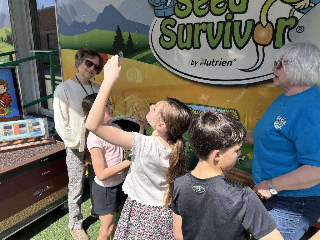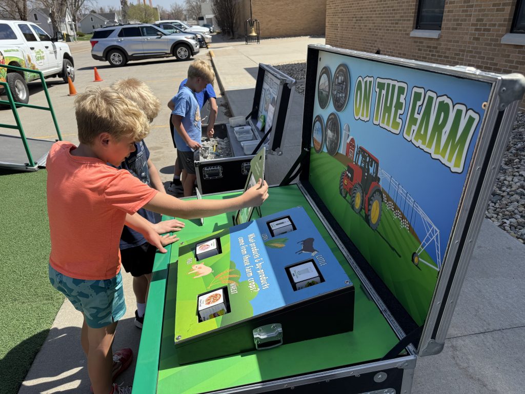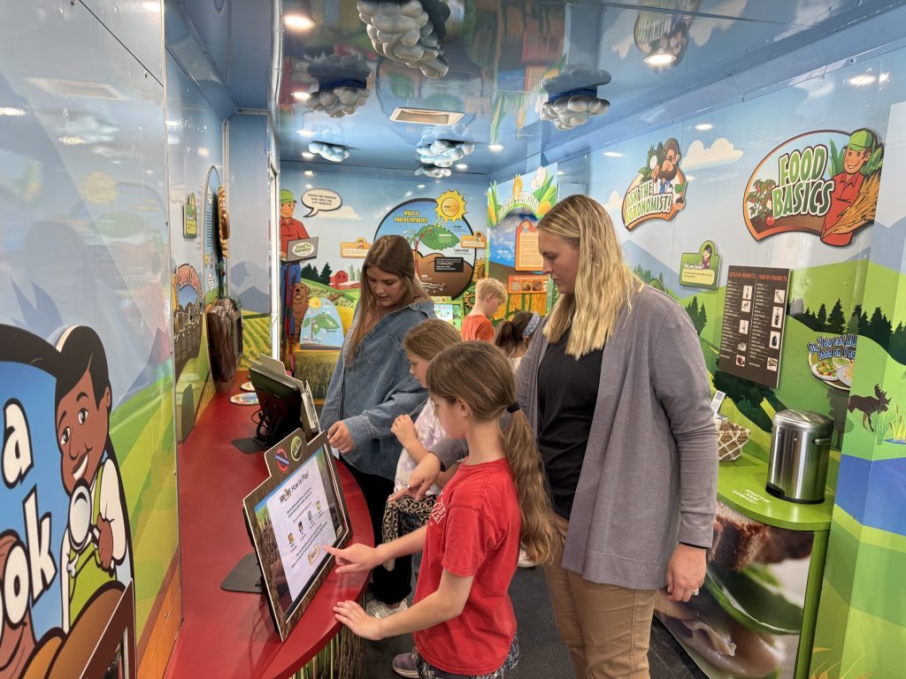 Inside the trailer, students explored interactive stations featuring touchscreen games, simulated weather systems, and lessons on plant nutrients and crop growth. Students had the opportunity to learn what plants need to survive, including water, sunlight, and nutrients like nitrogen, phosphorus, and potassium, and how soil layers support plant life.